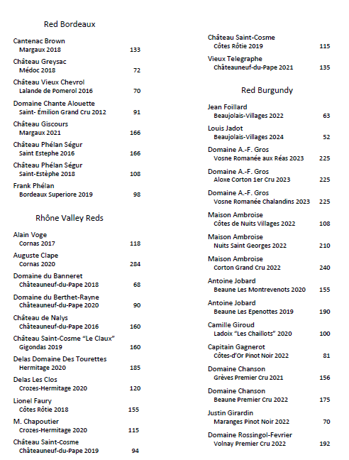 Wine List